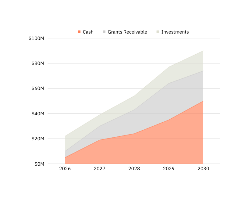 Cash made up 55% of the company's recorded asset value in 2030